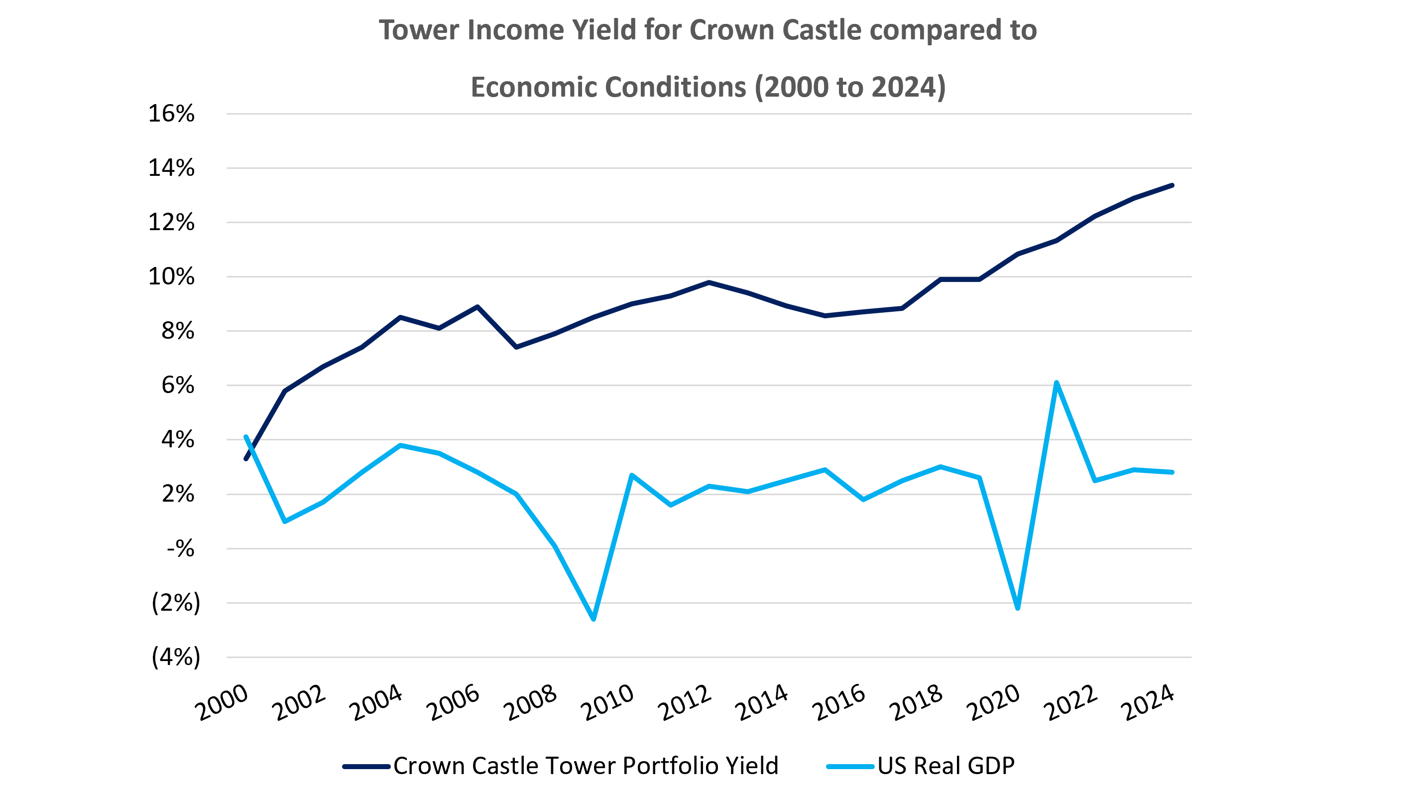 Figure 3 below shows the portfolio yield for US communications infrastructure company Crown Castle as an example, with yield rising steadily over time.