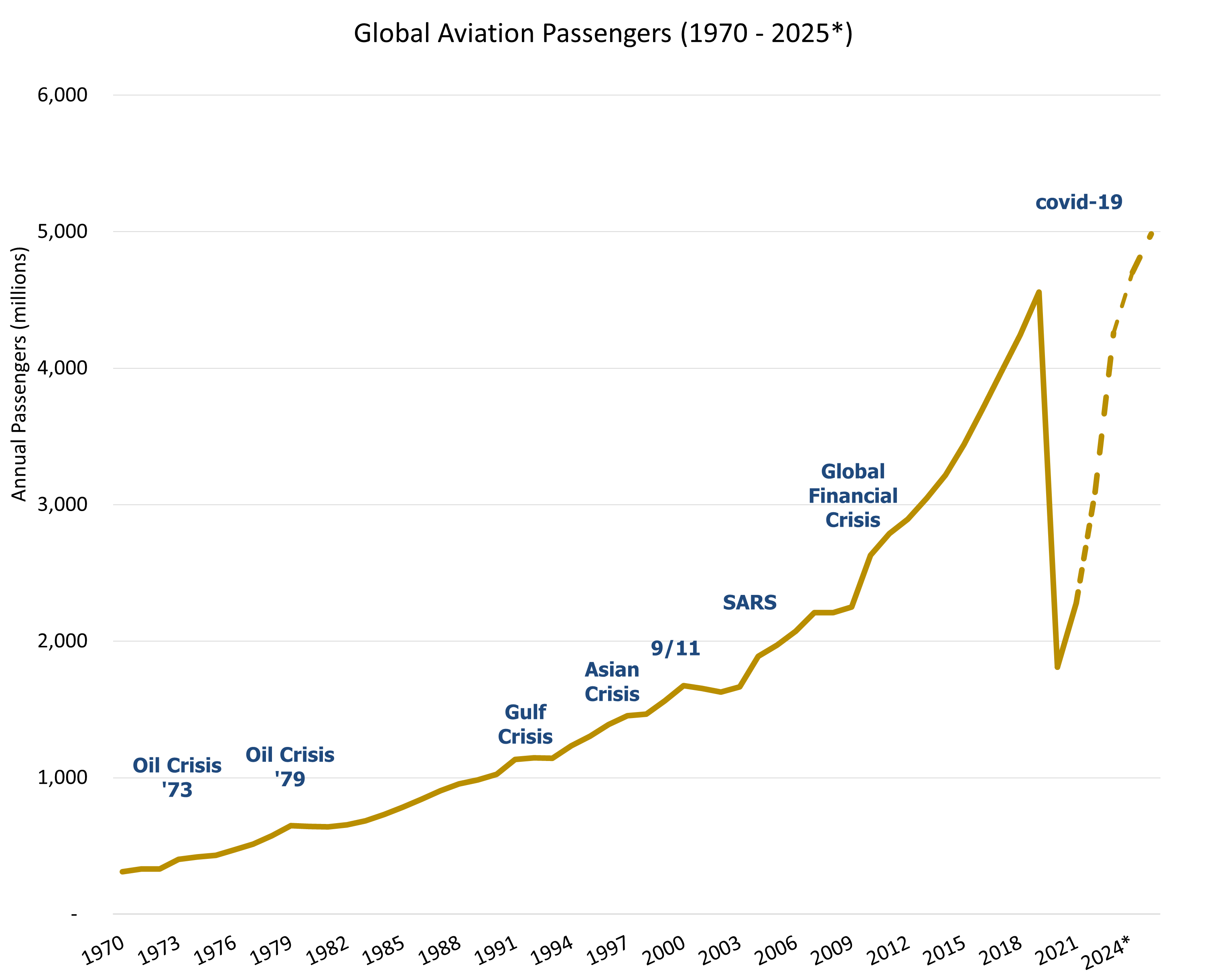 Source: World Bank, IATA, Magellan Investment Partners. *Note that 2022- 2025 are based on Revenue Passenger Kilometres.