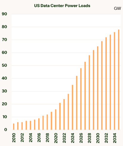 The third key factor is overall strong forecast growth in demand for power. In particular, this reflects surging data centre demand, which is expected to more than double from 2025 to 2030. Meeting such strong demand suggests more capex across the energy mix. Renewable energy is an especially attractive option for meeting some of this demand as it is relatively quick to bring online, while long lead times on new gas make it a less-ready option.